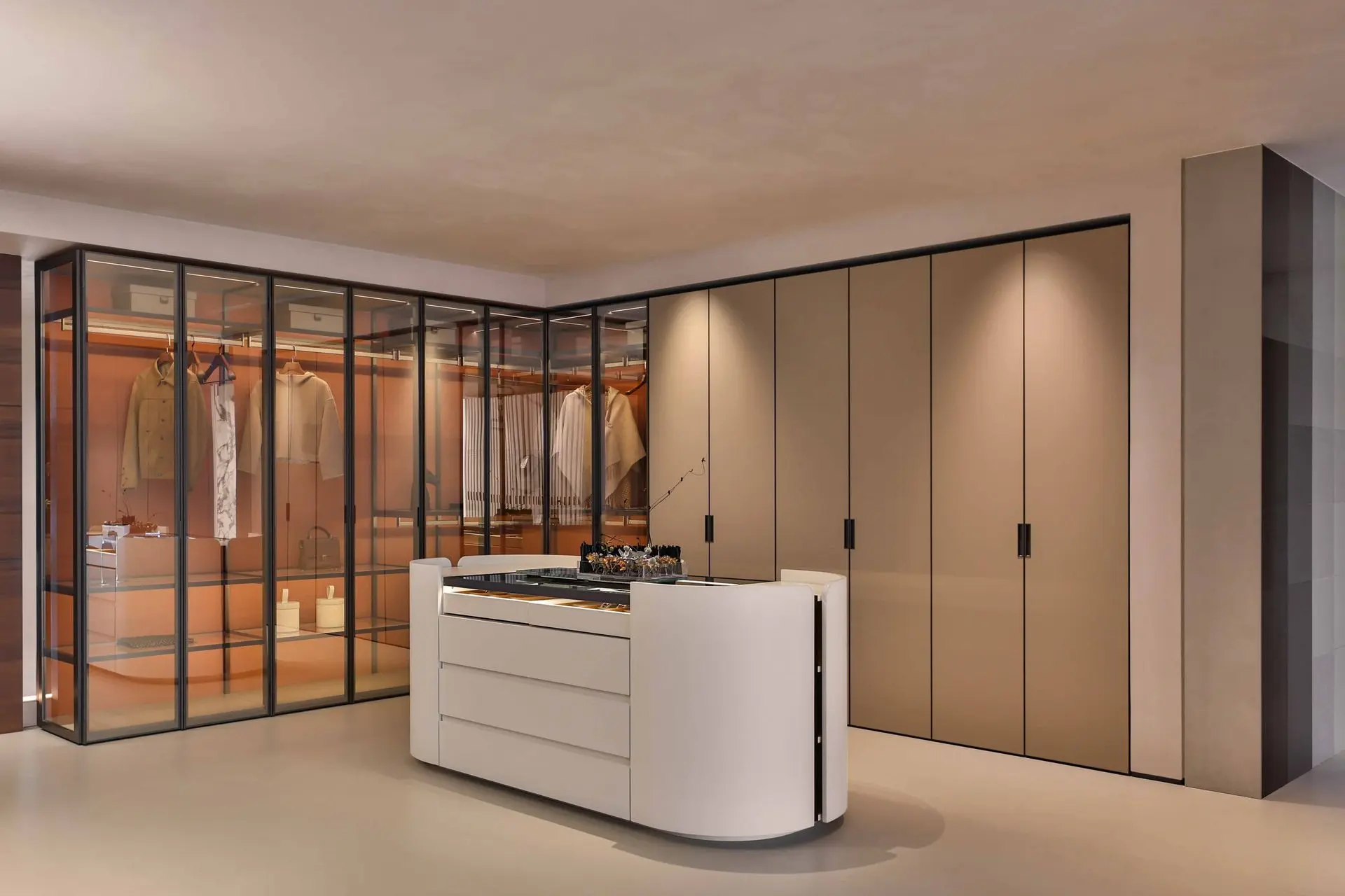 You step into your closet. Soft LED light spills across glass doors and velvet lined drawers. Every shoe, every shirt, every piece - in perfect order.